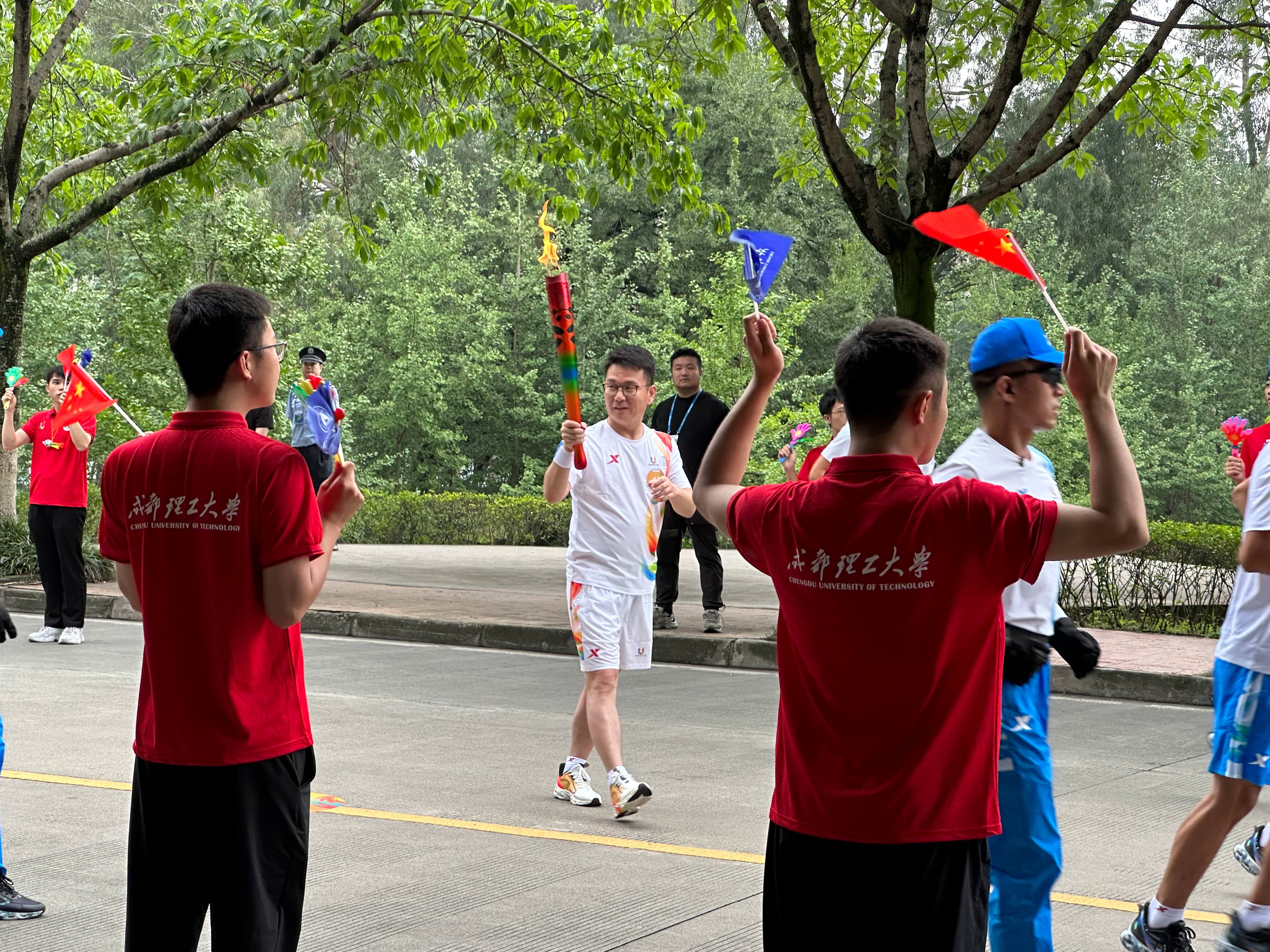 沿着预定线路奔跑向前,沿路学生或驻足观看,或鼓掌加油,此起彼伏的欢呼声,是对赛事即将召开的期盼,一路传递大运火炬的同时,也点燃了这座城市的激情之火。活动现场洋溢着广大市民的热切期盼,充满了天府之国的青春力量。